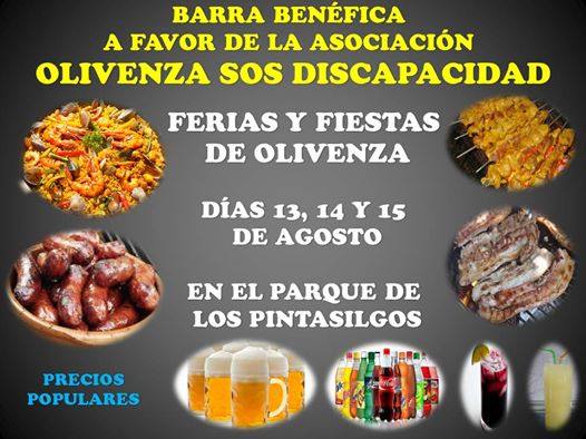 Durante los días 13,14 y 15 de agosto, con motivo de las Ferias y Fiestas de Olivenza 2016, la recién creada asociación Olivenza SOS Discapacidad contará con una barra benéfica instalada en el Parque de los Pintasilgos.
