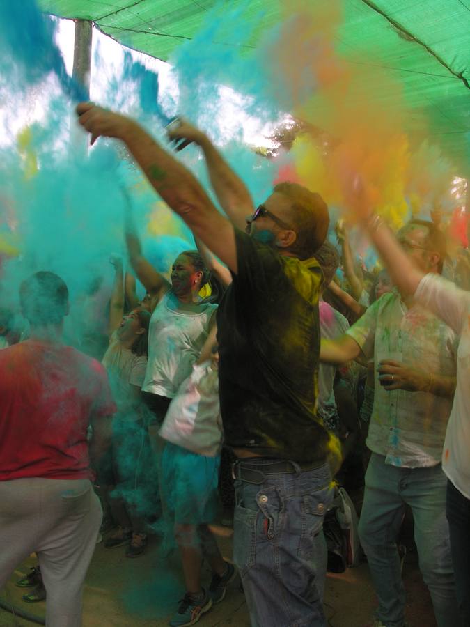 La cuenta atrás para disfrutar lanzando al aire los polvos de colores, que KinoBodyArt disparaba al mismo tiempo desde unos cañones colocados en el suelo, se pudo escuchar hasta en cuatro ocasiones, creando a su término nubes multicolor que envolvían a todos los presentes.