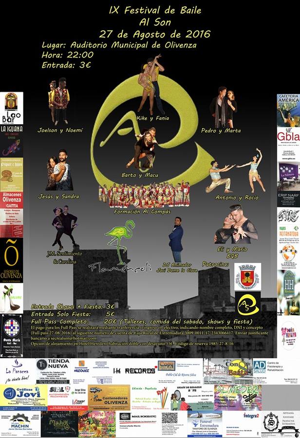 La Asociación Cultural y de Baile Alson realiza ya los últimos ensayos y ultima los preparativos para su IX Festival de Baile, que el próximo sábado 27 de agosto traerá hasta Olivenza a medio centenar de profesionales de esta disciplina que se subirán al escenario del Auditorio Municipal junto a los componentes de Alson y el grupo musical oliventino Flaméncoli, a partir de las 22 horas.