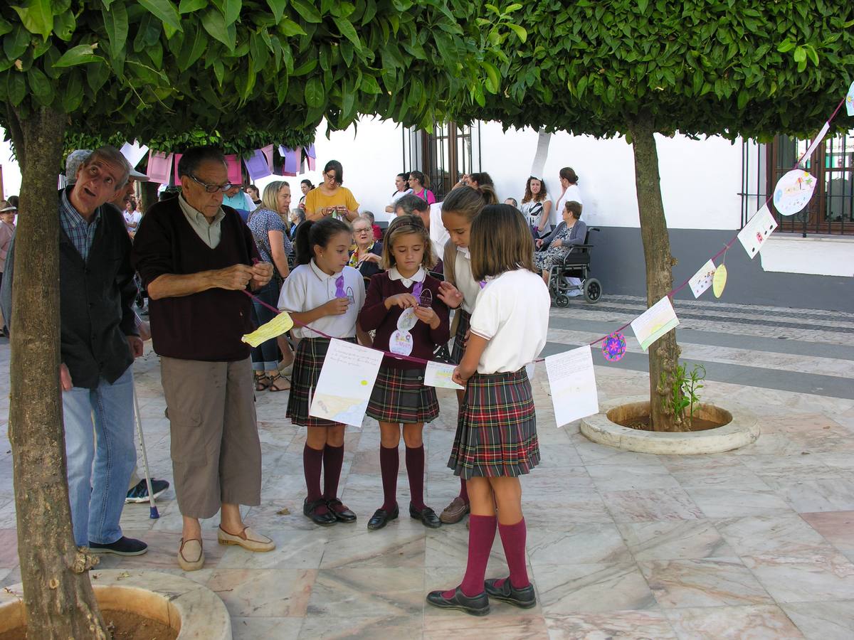 El árbol de los recuerdos, actividad impulsada por Caser Residencial y el Ayuntamiento de Olivenza, ha reunido a mayores de este centro y de la Residencia Virgen de Guadalupe, alumnado y profesorado de las Escuelas Parroquiales del Sagrado Corazón, dirección del Colegio Francisco Ortiz, usuarios de Aprosuba-14 Plena Inclusión y representantes de asociaciones como Empresarias Juntas y Cuenta Conmigo, la Cofradía del Descendimiento o el Museo Etnográfico Extremeño González Santana, que ha aportado una copia del llamamiento que en los años 80 se hizo a la ciudadanía para su creación y de la noticia de su inauguración.