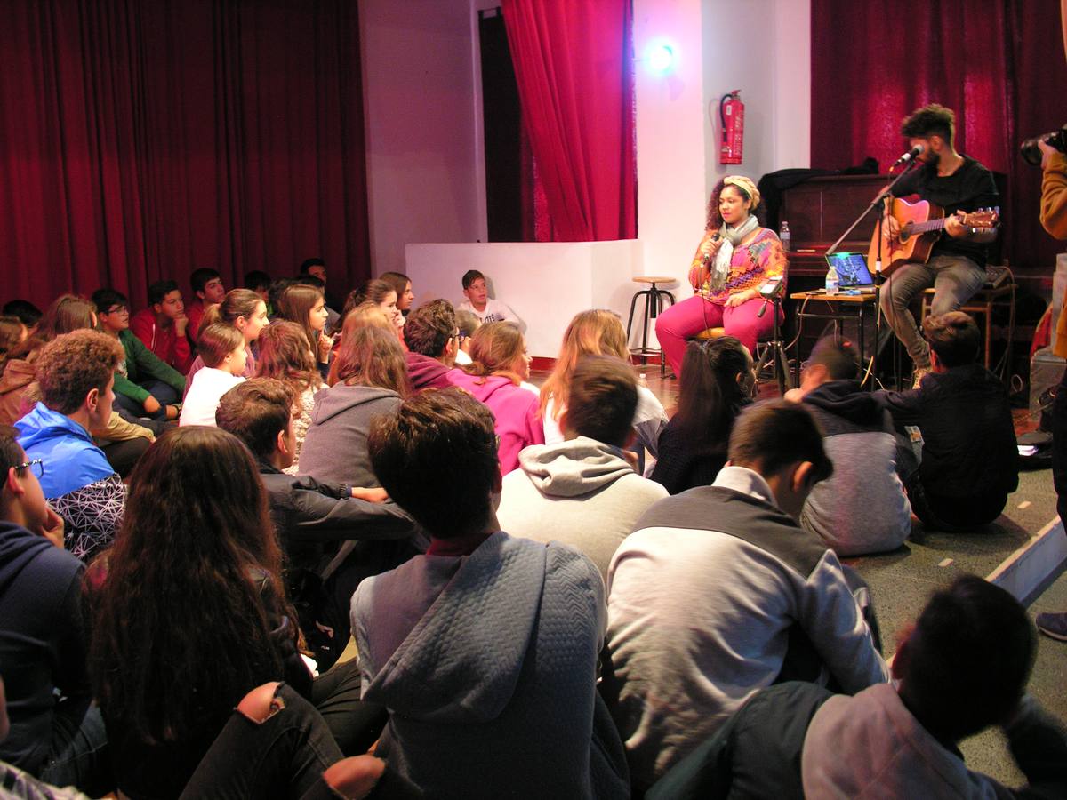 Con el encuentro celebrado en el día de ayer con alumnado de Secundaria de las Escuelas Parroquiales del Sagrado Corazón, la cantante brasileña, Lorena Nunes, y el músico y productor, Claudio Mendes, pusieron fin al arranque de su gira Solo Dos en Olivenza que ahora les llevará por España y Portugal mostrando la riqueza cultural de Brasil.