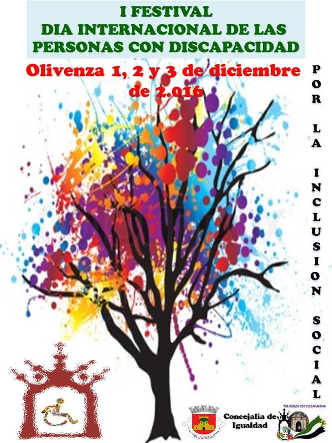 Este I Festival por la inclusión social de las personas con discapacidad se abrirá el jueves 1 de diciembre a las 18.30 horas con la intervención del alcalde de Olivenza, Manuel J. González Andrade; la concejala de Igualdad, Nuria Jiménez Campanario, y la presidenta de Olivenza SOS Discapacidad, Mari Carmen Domínguez Méndez.