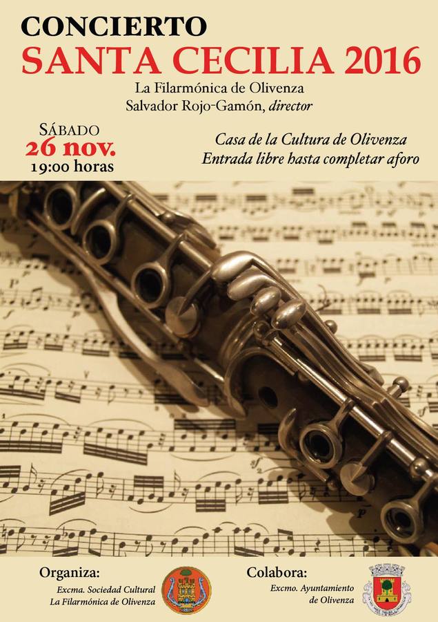 El tradicional Concierto de Santa Cecilia que La Filarmónica de Olivenza ofrece cada año por estas fechas contará mañana sábado, 26 de noviembre, con el estreno de una pieza creada por el director de la centenaria banda, Salvador Rojo-Gamón, la bienvenida a los nuevos componentes y el nombramiento de Socio de Honor a Don Alberto Lebrato Ramiro, director de La Filarmónica de Olivenza entre 1955 y 1962.