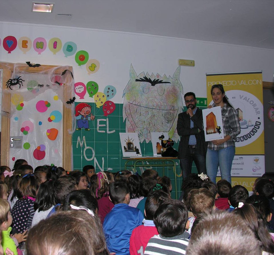 El alcalde de Olivenza, Manuel J. González Andrade, y la Agente de Empleo y Desarrollo Local, Pilar Aranda, han compartido esta mañana un encuentro con el alumnado de cuatro y cinco años del CEIP Francisco Ortiz, en el que han presentado a la mascota de peluche así como las imágenes de edificios históricos sobre los que trabajarán y que visitarán.