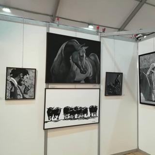 Un total de 30 obras procedentes de colecciones del artista como Sol y Sombra, Joyas Taurinas o Puro Alcón acercaron al espectador al mundo del taurino con el toro, el caballo y el campo como protagonistas