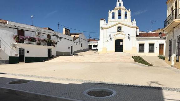 Con un presupuesto de 45.000 euros, financiado a través de Plan Dinamiza de la Diputación de Badajoz y fondos de la AEPSA, se ha trabajado con una destacada optimización de recursos sobre una superficie total de 700 metros cuadrados. En el suelo de este espacio se ha colocado piedra calçadinha, en taco de 5×5, y en rampas y escalones de acceso a la iglesia mármol portugués macizo con tratamiento antienvejecimiento.