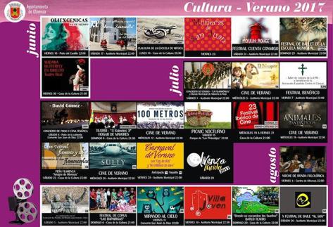 Las proyecciones cinematográficas previstas para las noches de los miércoles del mes de julio en el Auditorio Municipal se iniciaron el día 5 con El Principito, para continuar el miércoles 12 con 100 metros; el día 19, con Animales fantásticos y el 26 con Sully. Del 19 al 21 de julio en la Casa de la Cultura se pudo asistir a la proyección de los cortometrajes participantes en la XXIII edición del Festival Ibérico de Cine.