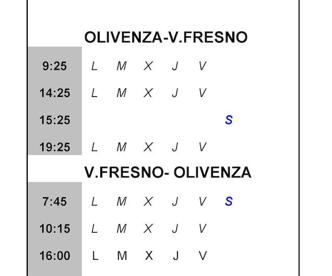 Las líneas de autobuses que comunican Olivenza con las localidades de Badajoz, Alconchel-Villanueva del Fresno y Cheles comenzaron a circular a partir del pasado 4 de septiembre en el horario correspondiente al otoño-invierno 2017/2018.