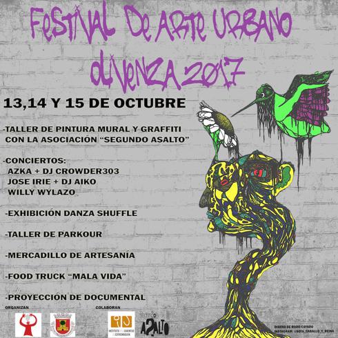 Desde hoy, 13 de octubre, y hasta el próximo domingo día 15, Olivenza celebrará su primer Festival de Arte Urbano con una programación en la que se han incluido talleres de pintura mural y graffiti, una exhibición de danza shuffle, mercadillo de artesanía, la food truck oliventina Mala vida, conciertos de diversos estilos musicales y un taller de parkour, disciplina que consiste en desplazamientos en un entorno de forma rápida y fluida superando obstáculos mediantes carreras, saltos, etc