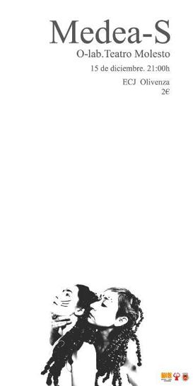 Partiendo del mito de Medea e intentando colmar las lagunas sobre una de las figuras más importantes de la dramaturgia universal, Mireia Bustos y Cristina Lázaro Sánchez, alumnas del O-lab de 'Teatro Molesto' llevarán a escena este viernes, 15 de diciembre, el resultado de su investigación sobre este personaje de la mitología griega Medea-S.