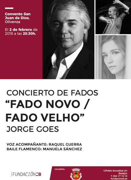 Olivenza ha sido uno de los tres lugares elegidos por el cantante portugués Jorge Goes para ofrecer sendos conciertos previos a la presentación oficial el próximo 23 de febrero de su nuevo disco Fado novo, Fado velho, tercer trabajo discográfico del artista que le devuelve a sus orígenes en el mundo de la música y es todo un homenaje a su padre, João Goes, gran amante de la más pura esencial musical lusa.