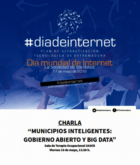 Con motivo del Día Internacional de Internet que se celebra cada 17 de mayo, Caser Residencial Olivenza ha organizado para este viernes, 18 de mayo, una actividad dirigida a residentes y familiares consistente en una charla que, con el título de Municipios inteligentes: Gobierno Abierto y Big Data, abordará cuestiones como las redes sociales, la aplicación de las mismas en servicios sanitarios y su presencia en la vida cotidiana en general.