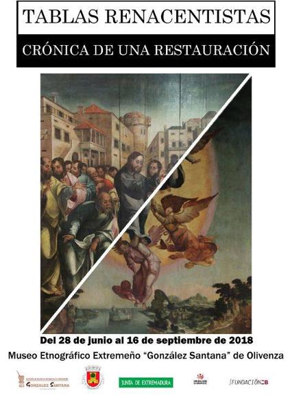 Este jueves, 28 de junio, a las 20:00 horas, la sala de usos múltiples del Museo Etnográfico Extremeño 'González Santana' de Olivenza acogerá el acto inaugural de la exposición 'Tablas Renacentistas: crónica de una restauración'.