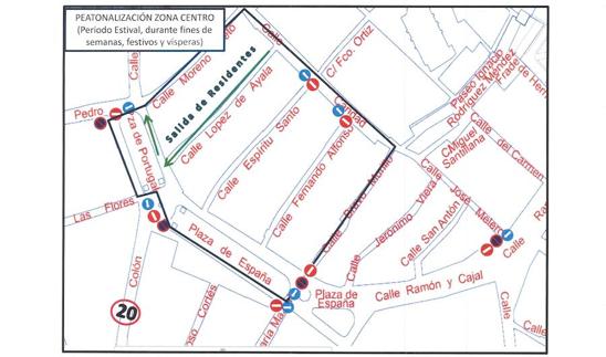 Como es habitual en los últimos años, desde principios del pasado mes de junio se está procediendo al cierre en fines de semana, festivos y vísperas de las calles del entorno de la plaza de España (Paseo Grande) y la avenida de Portugal (Paseo Chico) en horario de tarde-noche, aproximadamente desde las 20.30 horas hasta las 00.30-1.30 horas, que se extenderá hasta finales del mes de septiembre.