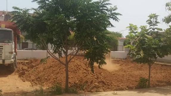 Entre las actuaciones se recoge además la eliminación de tres tocones de árboles, dos de ellos en la zona a ejecutar el arenero y el tercero junto a la fuente