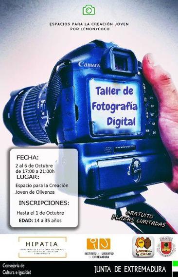 Del 2 al 6 de octubre, en horario de 17.00 a 21.00 horas, se desarrollará en el Espacio para la Creación Joven (ECJ) de Olivenza un nuevo taller de fotografía digital, primero de los que se celebrarán en la ciudad dentro de los recogidos en el programa de educación no formal 'Hipatia', del Instituto de la Juventud de Extremadura (IJEX), para el último cuatrimestre del año.
