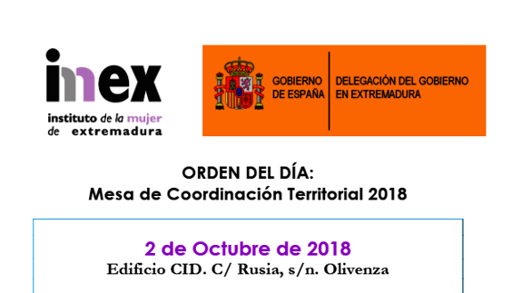 La Mesa de Coordinación Territorial, se convoca en cumplimiento de lo dispuesto en la Ley 8/2011, de 23 de marzo, de Igualdad entre Mujeres y Hombres y contra la Violencia de Género en Extremadura (LIVGEX) y en la Ley Orgánica 1/2004 sobre Medidas de Protección contra la Violencia de Género. También se cumple así como lo establecido en el Protocolo de actuación entre la Comunidad Autónoma de Extremadura, la Delegación del Gobierno en Extremadura y la Federación de Municipios y Provincia de Extremadura para el seguimiento y protección de los casos de víctimas de violencia de género en la comunidad autónoma de Extremadura.