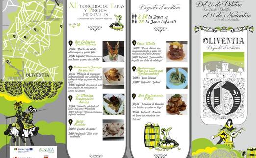 Del 26 de octubre al 11 de noviembre Olivenza realizará de nuevo un viaje a su pasado medieval con la celebración de Oliventia, Degusta el Medievo 2018, que como en ediciones anteriores contará con tres fines de semana temáticos en torno a gastronomía, historia, recreaciones de época y un mercado medieval rayano, y que culminará con la celebración del Día de la Tapa en la calle, que pone fin al XII Concurso de Tapas y Pinchos Medievales.
