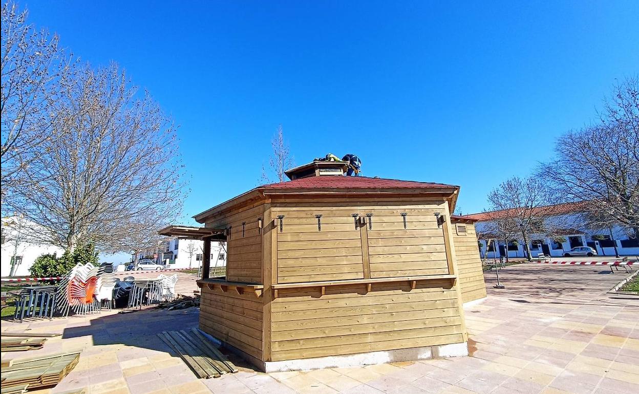 El Consistorio estima que en poco más de una semana se terminen los trabajos de fontanería y la instalación eléctrica, dando así por terminada la construcción de madera con la que está hecha el quiosco