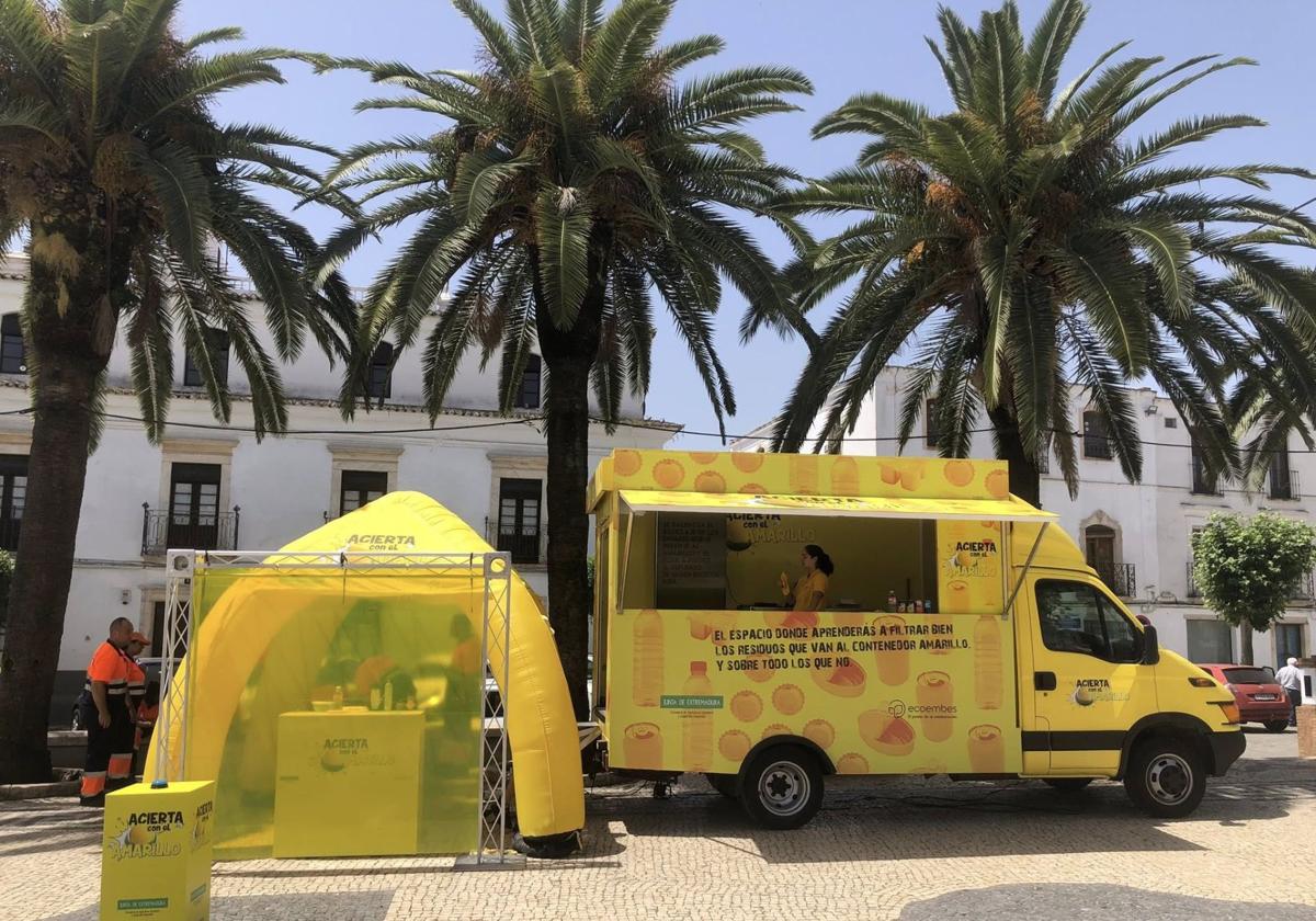 La campaña de reciclaje 'Acierta con el amarillo', es una iniciativa de la Consejería de Agricultura, Ganadería y Desarrollo Sostenible en colaboración con Ecoembes, que pretende mostrar de forma didáctica en 15 municipios extremeños cómo reciclar correctamente los envases de plástico, latas y briks.