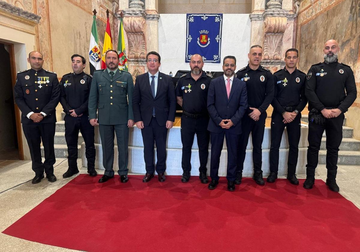 A los homenajeados los acompañaron el resto de agentes que componen el Cuerpo de la Policía Local, representantes de la Comandancia de la Guardia Civil de Olivenza y de la Policía Local de Badajoz, además de los familiares de los condecorados, entre otros.