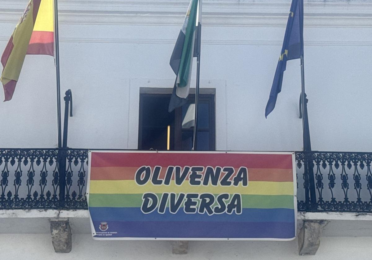 La pancarta se colgó en el balcón principal y representaba la bandera arcoíris con el lema 'Olivenza diversa', reafirmando así su apoyo a la libertad, la inclusión y el respeto por todas las identidades