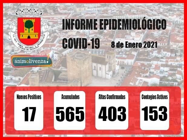 La dirección general de Salud Pública de la Junta de Extremadura ha notificado este viernes, 8 de enero, 17 nuevos contagios por Covid-19 en Olivenza (de los que dos son de San Benito de la Contienda).