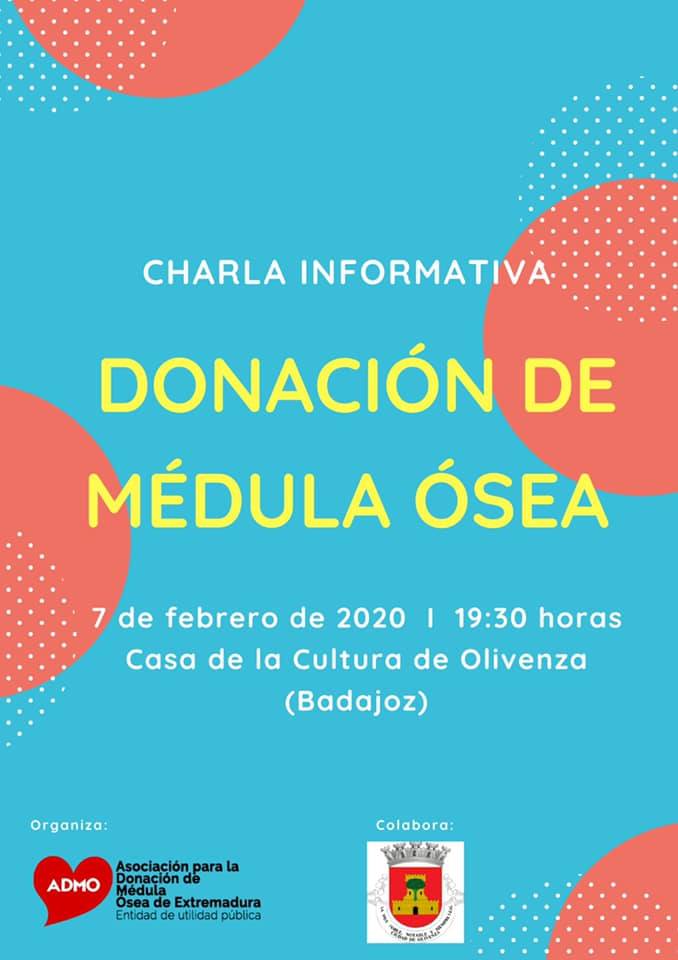 La charla de este viernes dará comienzo a las 19.30 horas y correrá a cargo de personal técnico de la ADMO, en un esfuezo para reforzar la campaña divulgativa que la familia de Lucas ha iniciado por las redes sociales, invitando a la ciudadanía a que se haga donante de médula ósea mediante la realización de una simple analítica de sangre, que por cercanía en la comarca de Olivenza se puede solicitar en el Hospital Universitario de Badajoz, antiguo Infanta Cristina.
