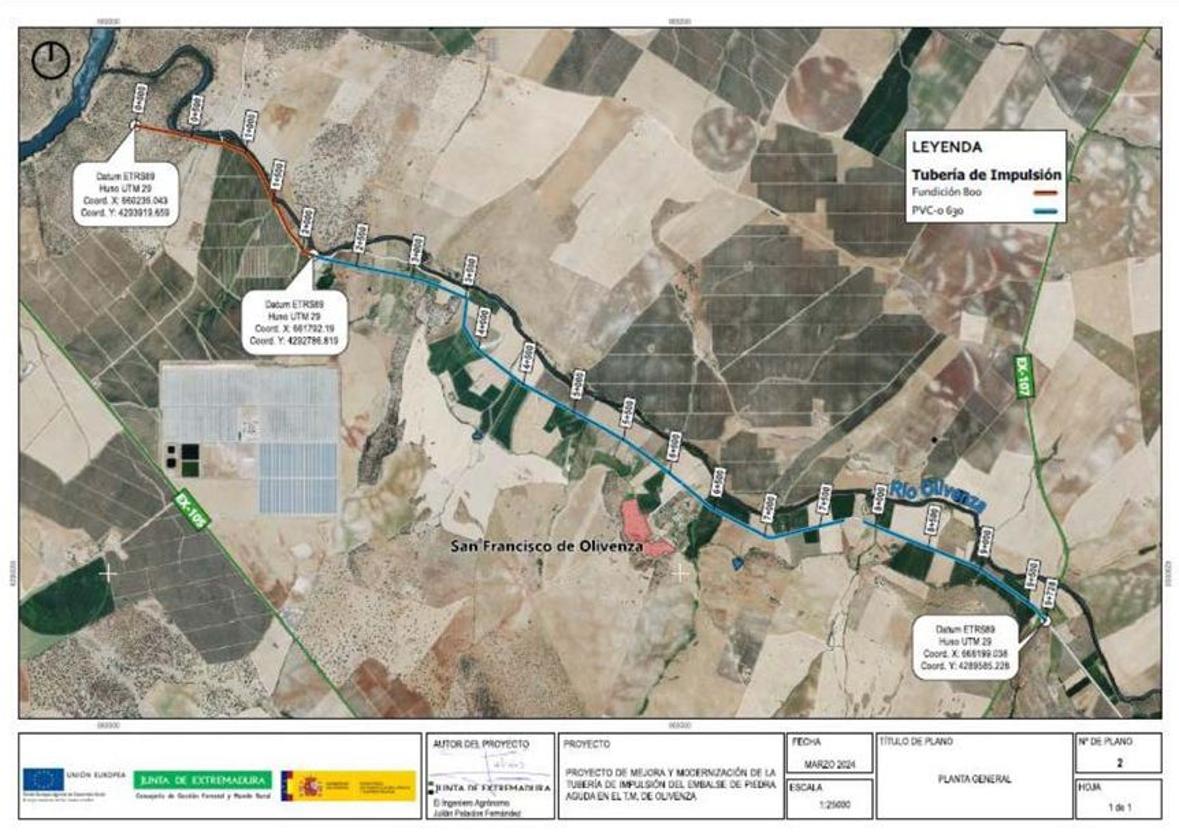 El DOE, Diario Oficial de Extremadura, emitía el pasado 24 de diciembre la resolución del 7 de diciembre de 2024, de la Dirección General de Sostenibilidad, por la que se formula informe de impacto ambiental del proyecto 'Mejora y modernización de tubería de impulsión del Embalse de Piedra Aguda, en el término municipal de Olivenza (Badajoz)'.