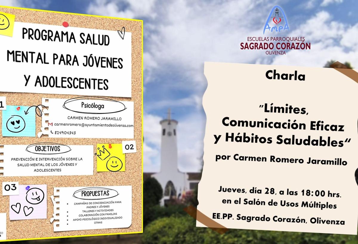 Con el título 'Límites, Comunicación Eficaz y Hábitos Saludables', la charla será impartida por la psicóloga Carmen Romero Jaramillo.