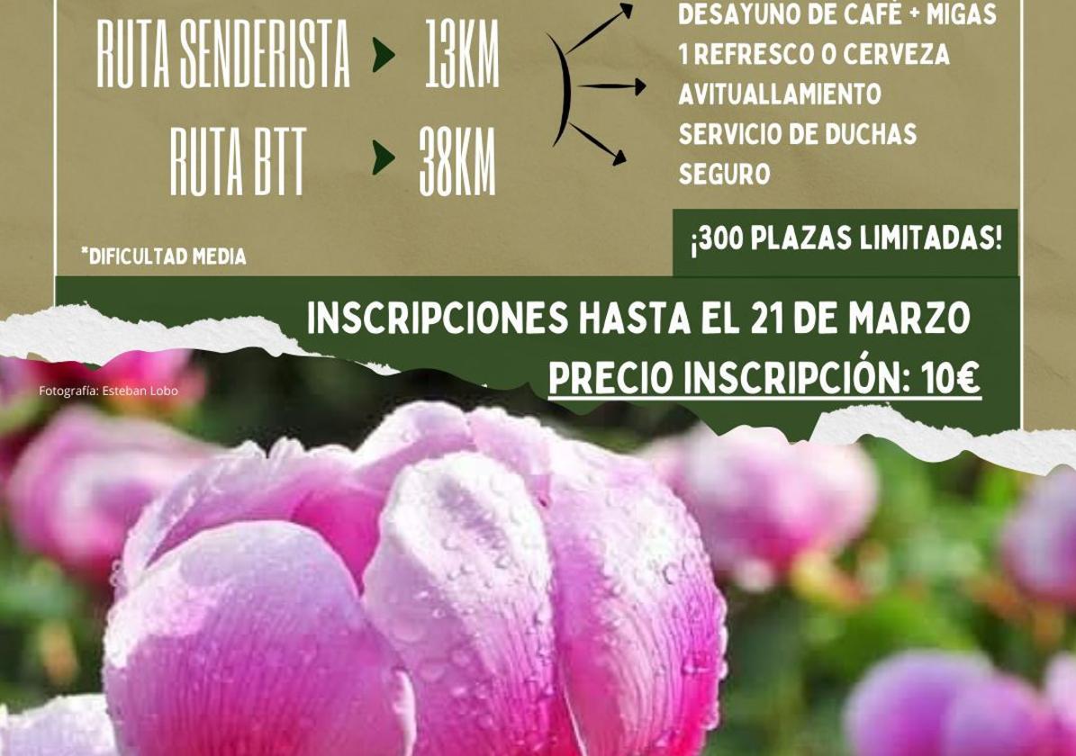 Las rutas se desarrollarán el próximo 29 de marzo, la de senderismo será de 13 kilómetros y la de BTT de 38, las inscripciones están abiertas hasta el 21 de marzo y tienen un precio de diez euros