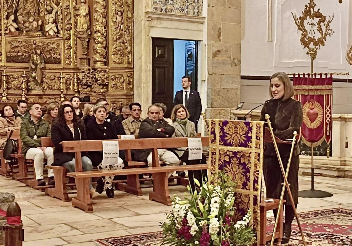 La pregonera subrayó además que la riqueza de la imaginería de la Semana Santa de Olivenza se une al respeto, la dedicación y la devoción con la que cada noche las hermandades recorren las calles de la ciudad.