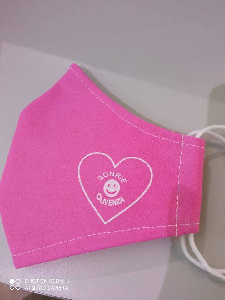 La asociación ha confeccionado tres diseños de mascarillas en tono rosa, negro y blanco, que incluyen la imagen corporativa de Sonríe Olivenza