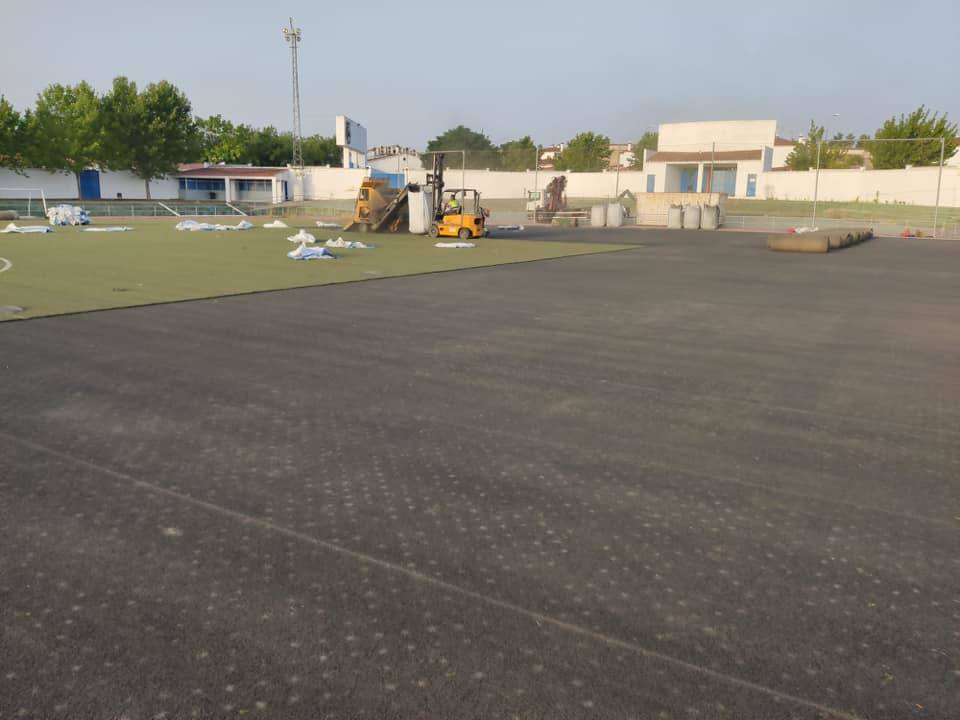 Sustituido el césped artificial del campo de fútbol de Olivenza por otro de última generación