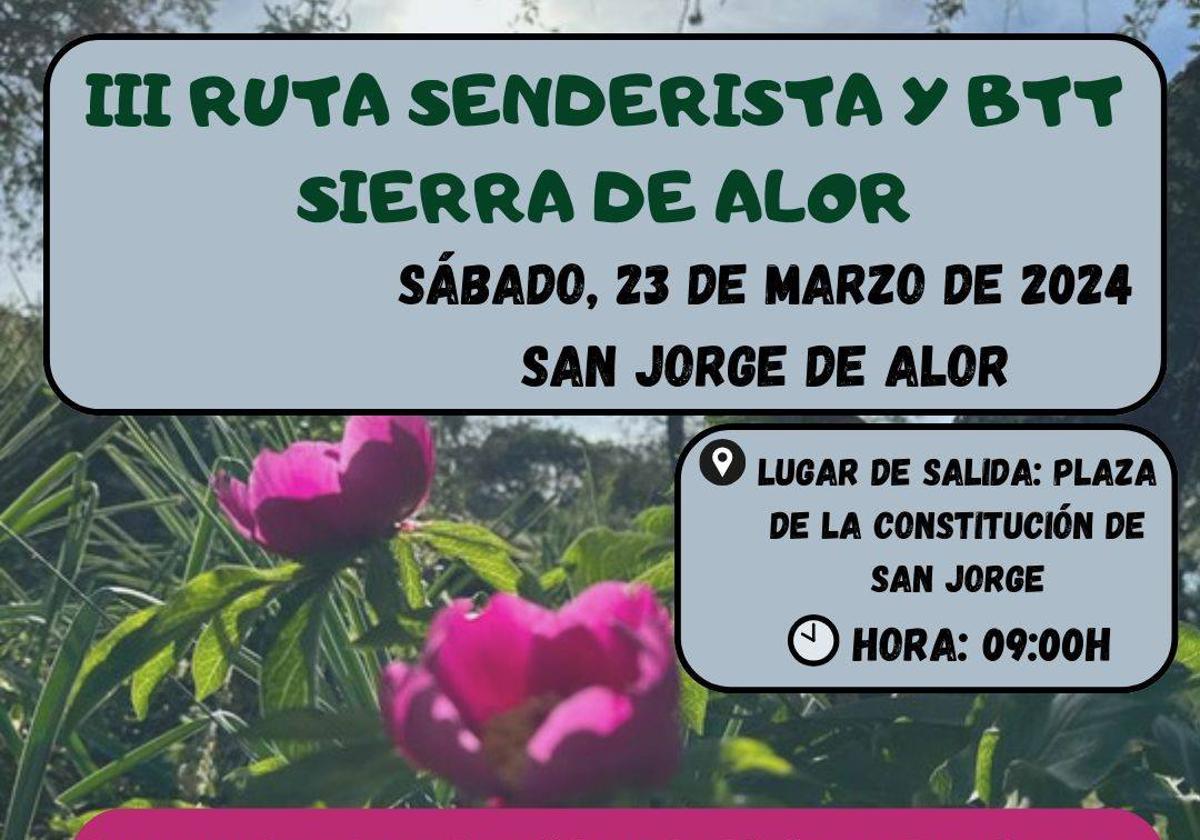 Las rutas serán de 16 kilómetros para el recorrido senderista y de 40 kilómetros para el recorrido en BTT, ambas son de dificultad media y se desarrollarán el sábado 23 de marzo en San Jorge de Alor