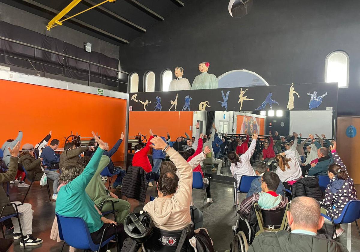 Los usuarios de Plena Inclusión Olivenza practican zumba sentados en el ECJ