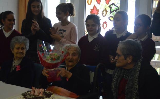 Vicenta Márquez cumple 102 años en la residencia Caser rodeada de niños